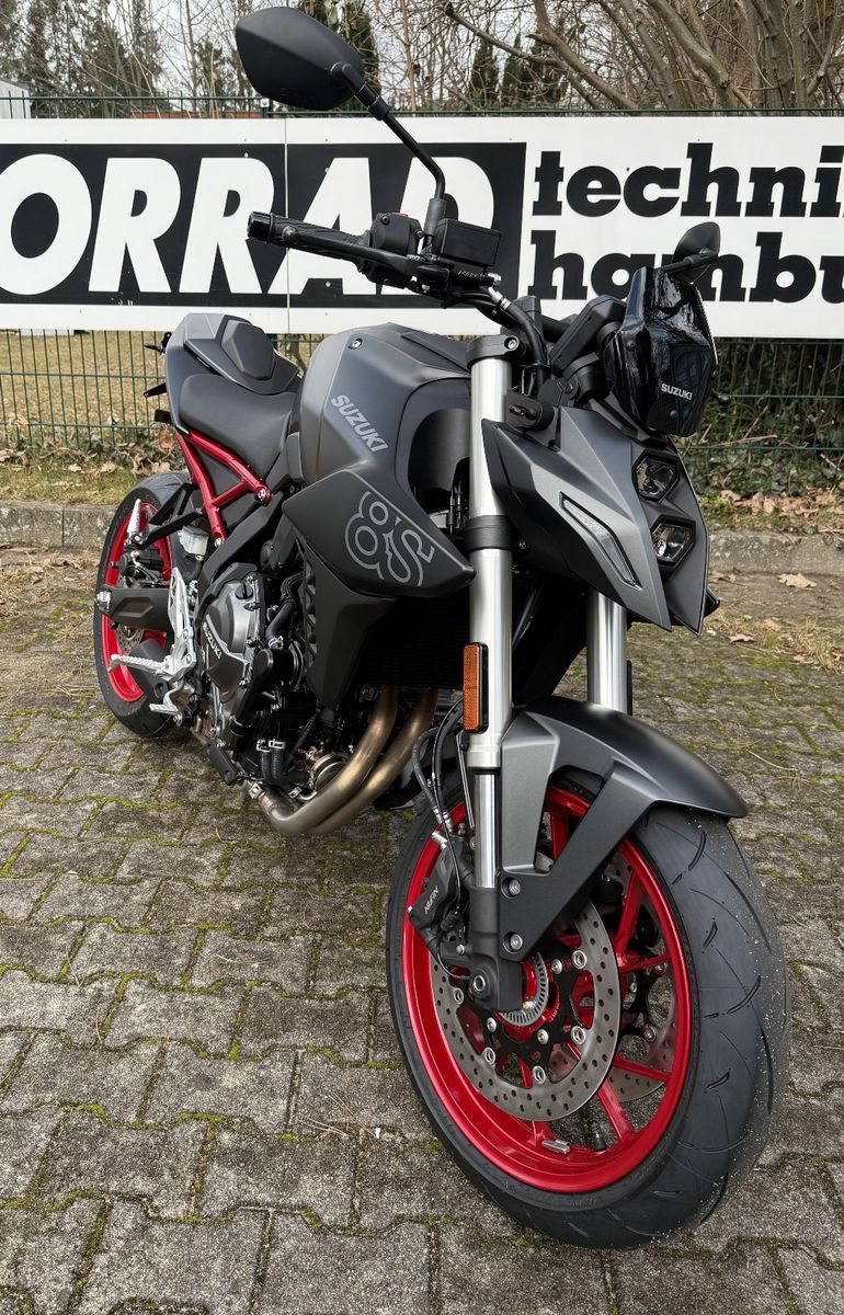 Die GSX 8-S, Modell 2025, in Schwarz mit roten Felgen bei UNS SOFORT lieferbar !